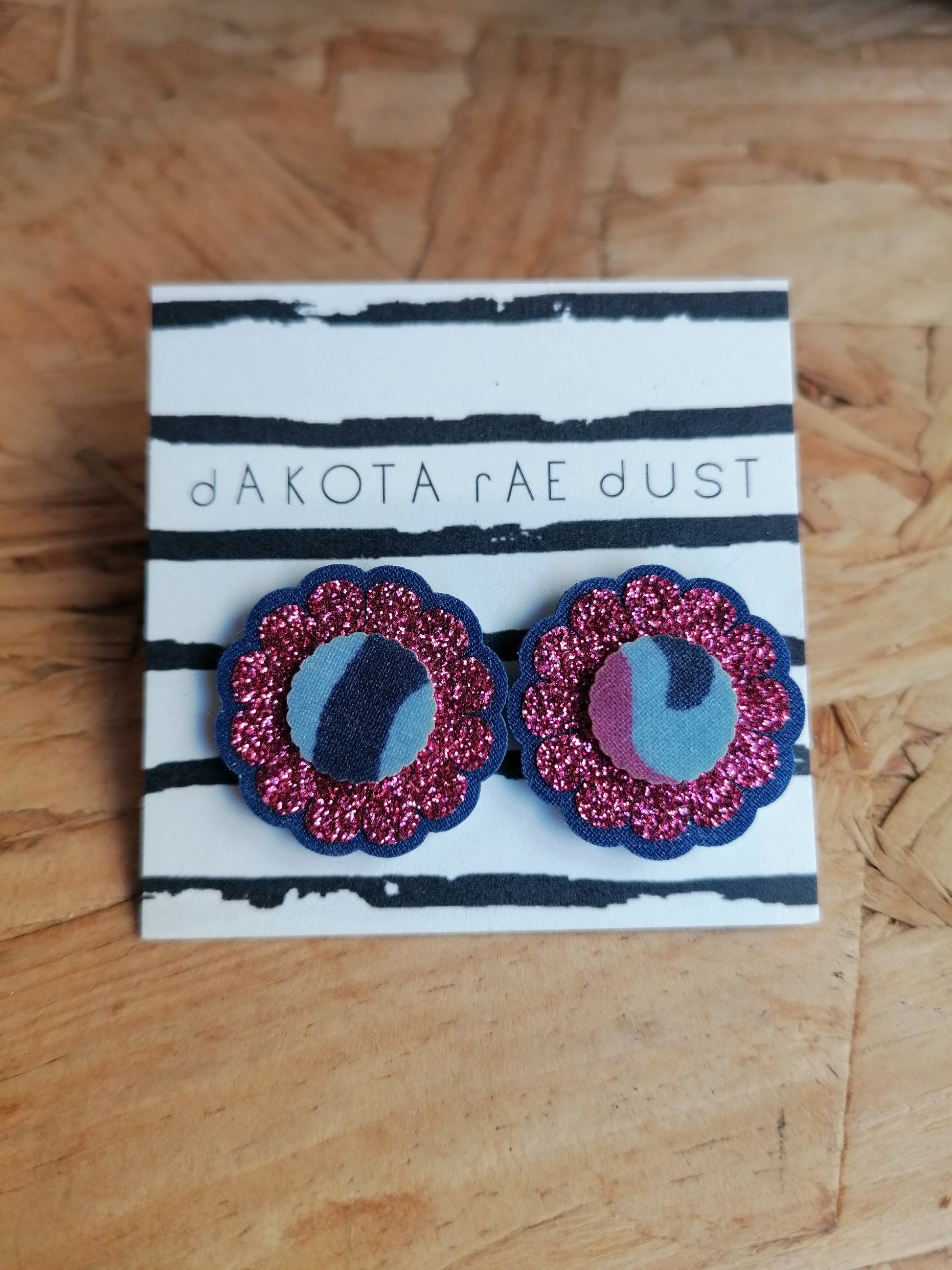 Dakota Rae Dust Earrings: Glitter Pink Swirly Flower