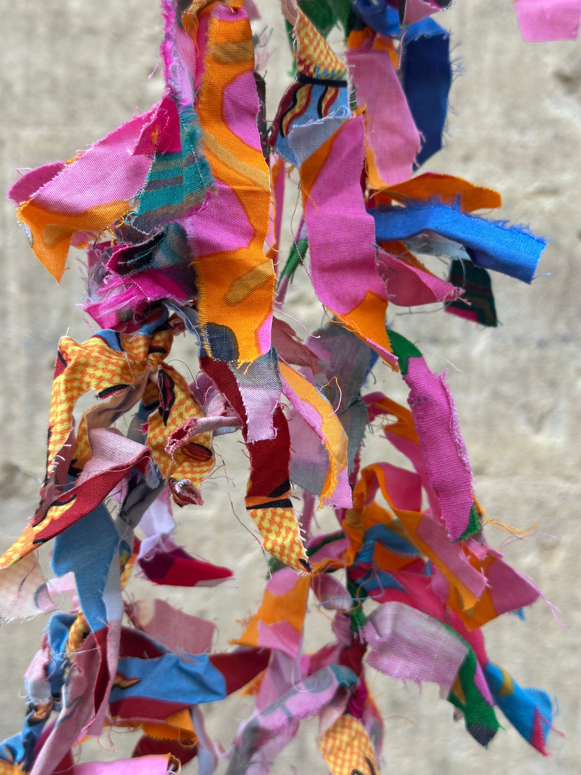 Made from strips of surplus cotton H&B fabrics, each piece is a one-of-a-kind, ideal for Christmas or any other celebration throughout the year.