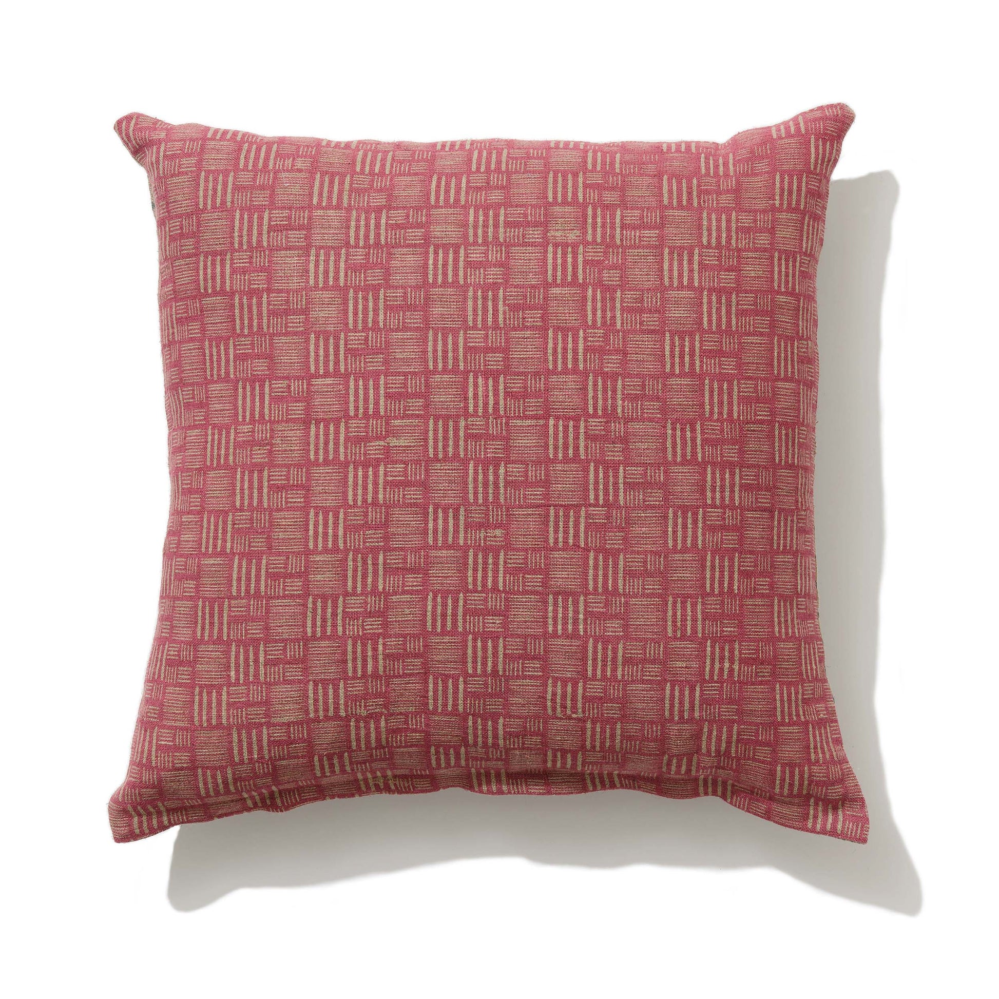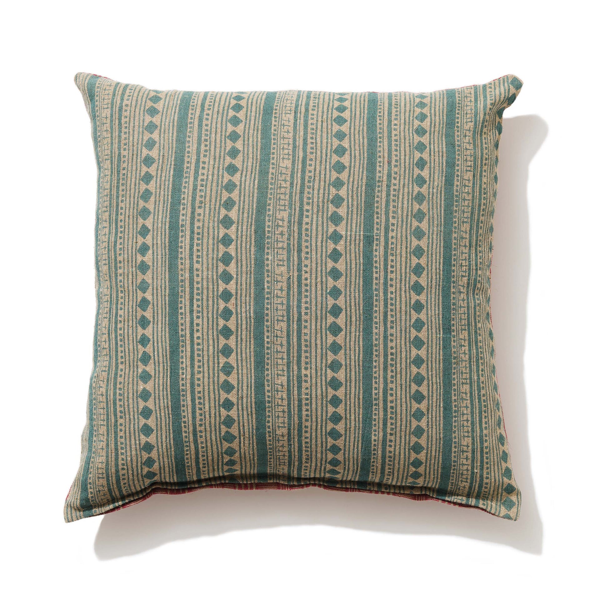 'Raspberry Hash' and 'Aquamarine Cabaret Stripe' linen reversible cushion.