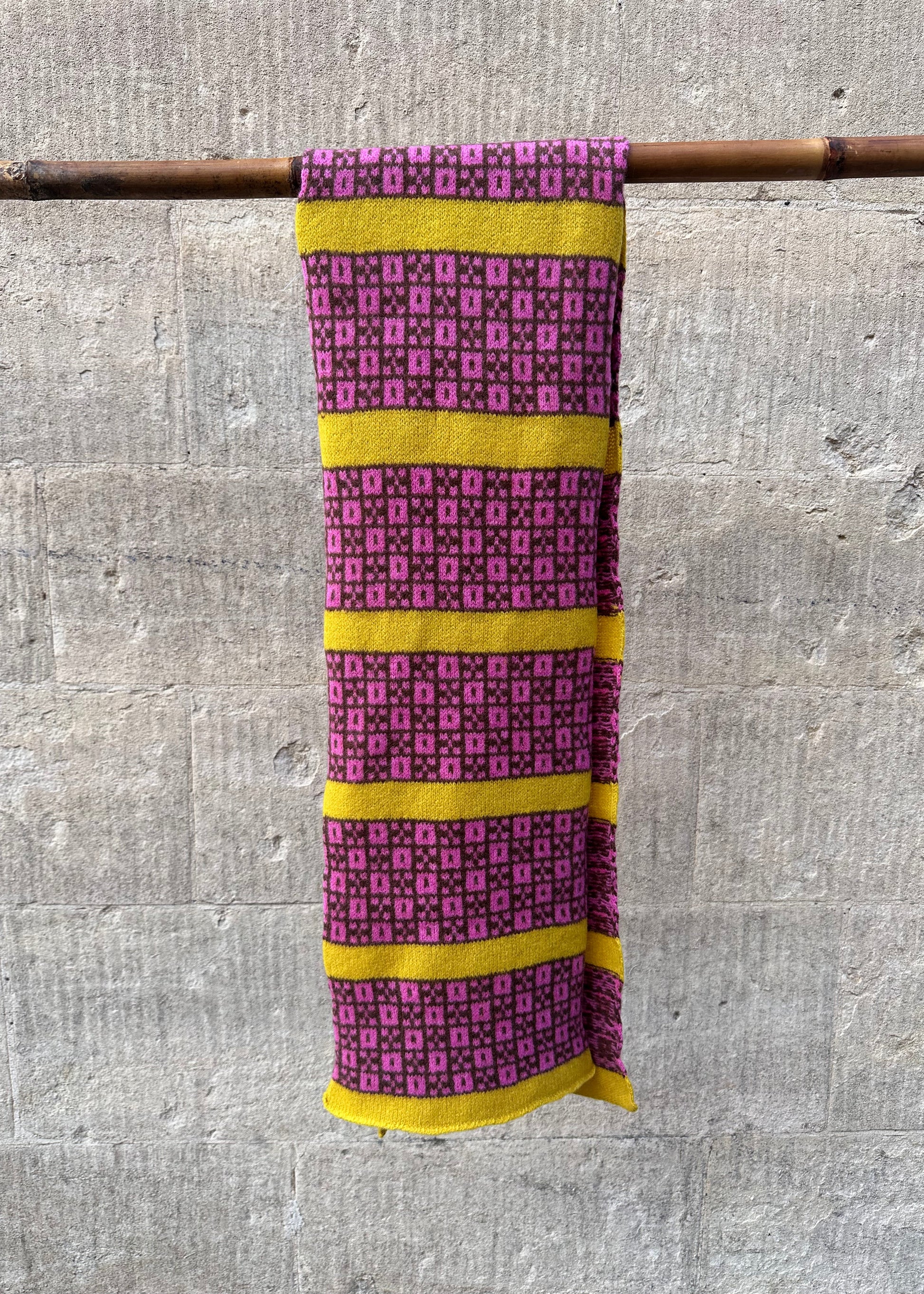 Lambswool Scarf: 'Pink & Yellow Chess Set'