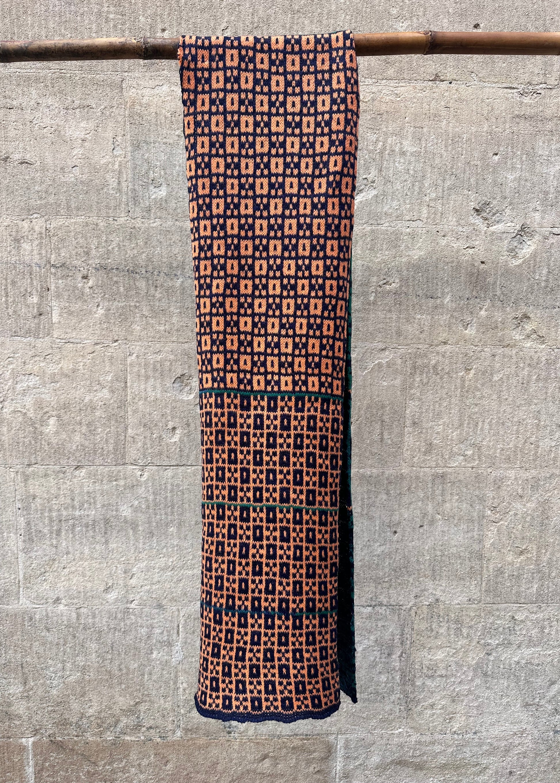 Lambswool Scarf: 'Green & Orange Chess Set'