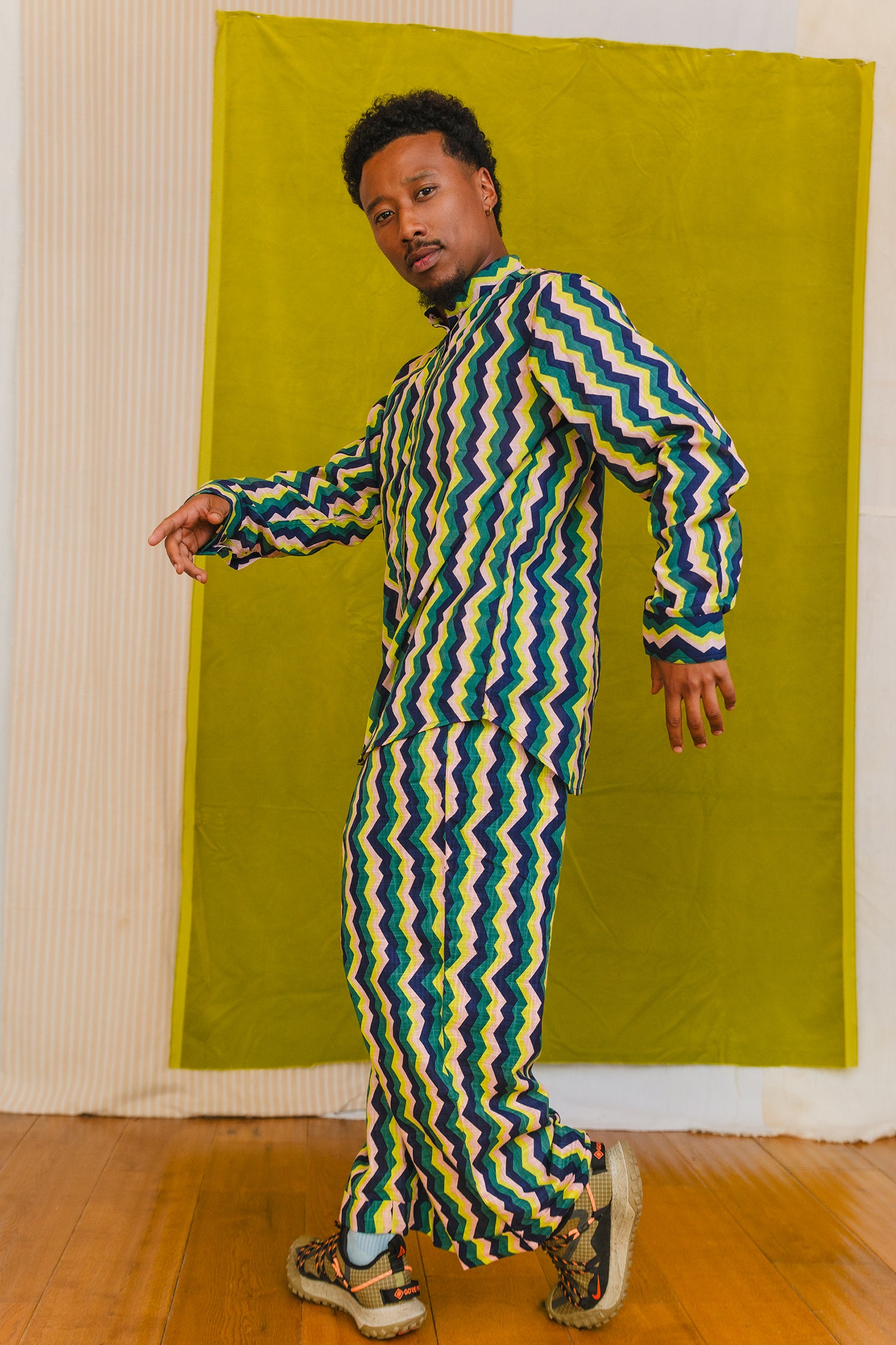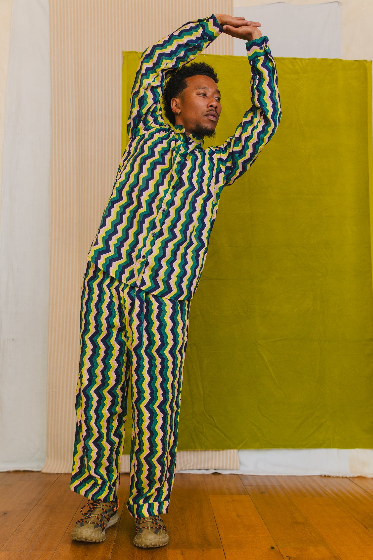 Responsibly made in India -  a shirt, a pyjama top, however you want to wear it the 'Muti Shirt' has you covered. Pair with The Muti Bottoms for the ultimate day-to-night set and purchase both for just £125.