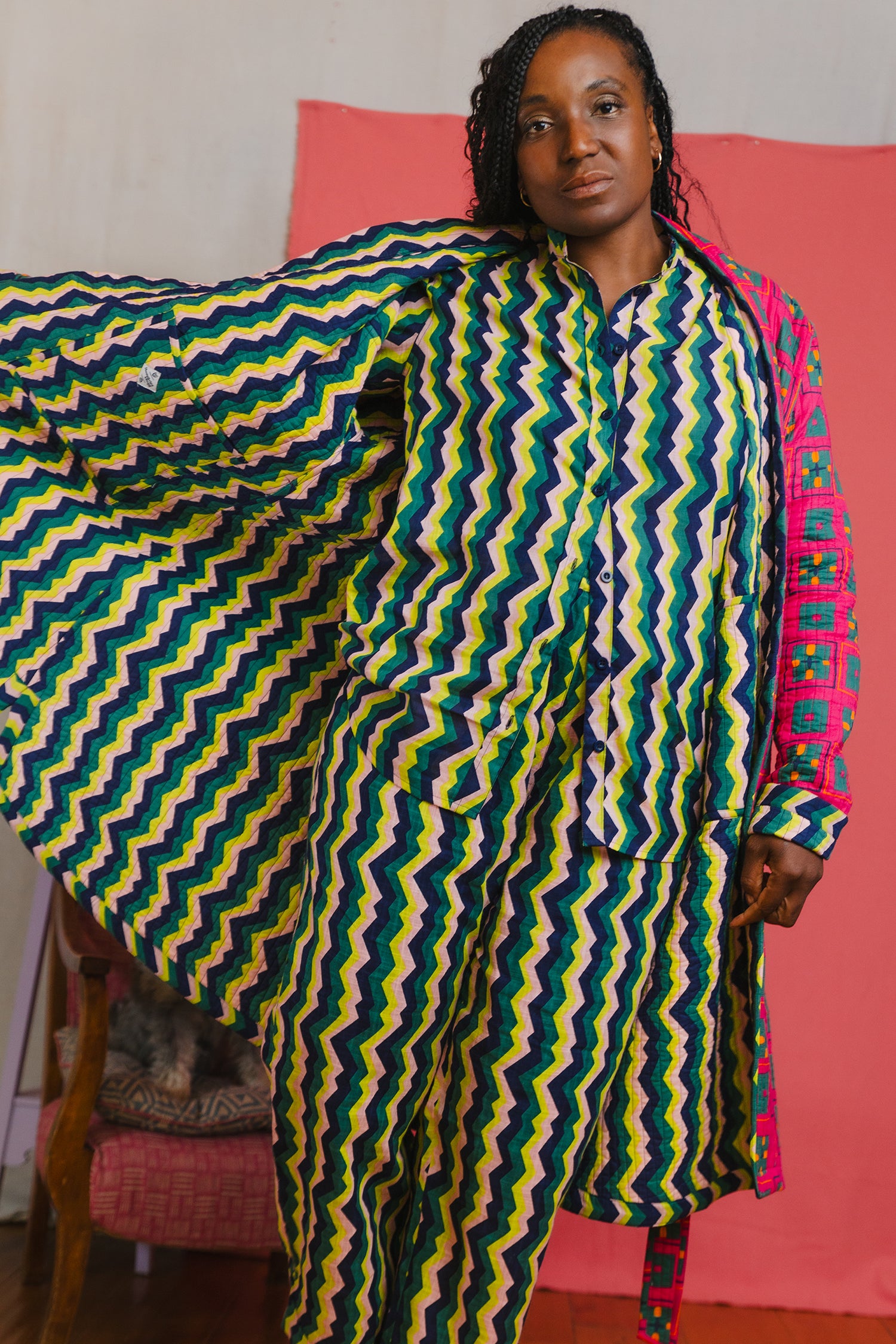 Alice’s designs are then printed onto 100% natural fabrics by a small team in Jaipur, India, before before being turned into clothing.